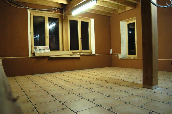 En parallèle pose du carrelage sur toute la grande pièce du rez: