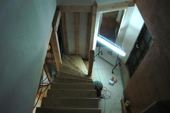 En fin de soirée toutes les marches sont fixées et toutes les contre marches (exceptées celles de 4 marches tournantes).
