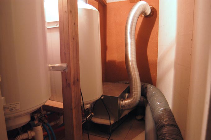 Ce soir elle fonctionne. Toutes les bouches ne sont pas encore raccordées, mais pour l'instant ça souffle dans un coin et cela extrait de l'autre. Cela fait du bien, il y a beaucoup d'humidité à évacuer.