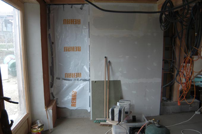 La matin talochage des murs du rez ( Kiwousawez et Wousawezky) . Et oui, on avait pas fait encore cette opération. Pas de photo, bien que un photographe soit passé. On devrait être dans Système D. Pour rappel, on avait posé un enduit terre au rez le 7 décembre.