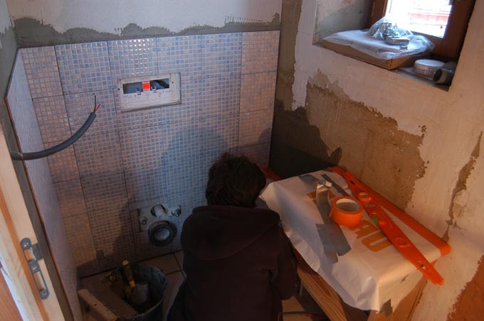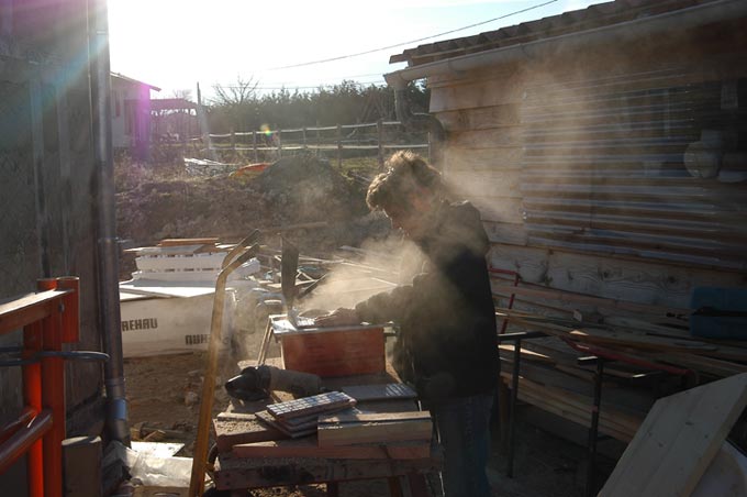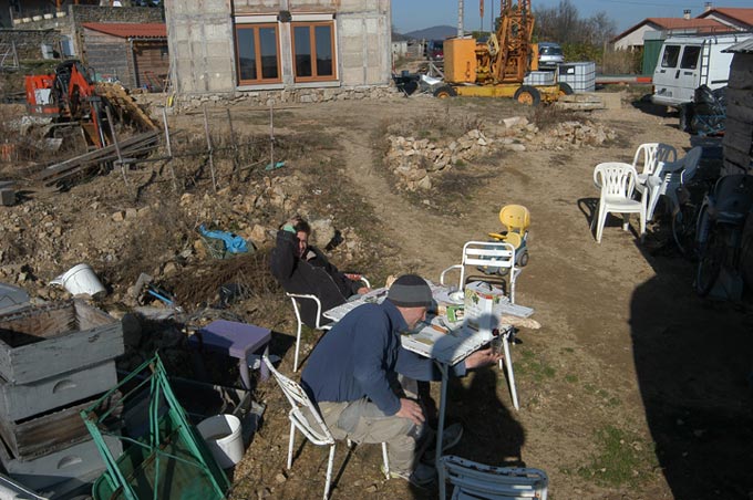 Le temps est toujours avec nous, on peut travailler dehors (6 février). La belle Kivousavez est aux carrelages.