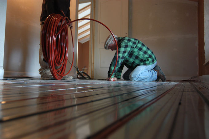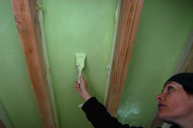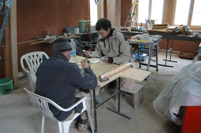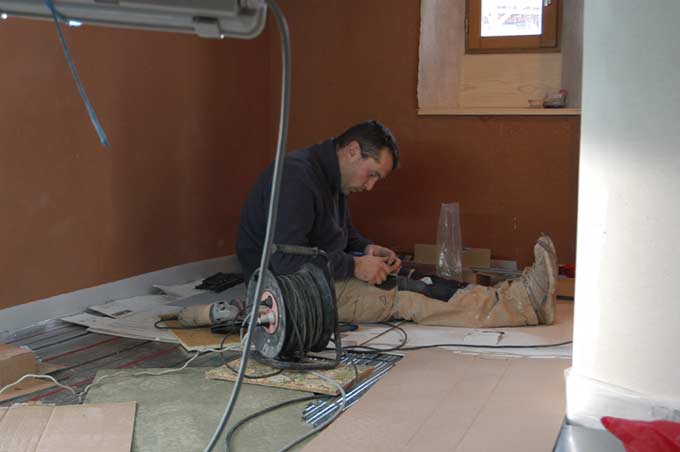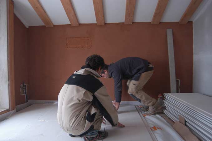 Le froid continue. Nous aussi. Il faut finir les sols de l'étage. Il y a du boulot.