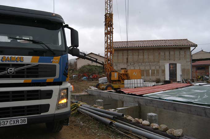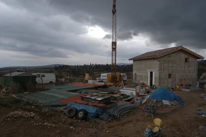 Guillaume est venu passer deux jours sur le chantier. Ce jeudi, avec damien, ils coulent une chappe sur le vide sanitaire de wc: il y avait quelques infiltrations lors de fortes pluies. De mon cotés courses et enfin commande de la VMC double flux (plan, débit, comparatif fournisseurs, commande internet).
