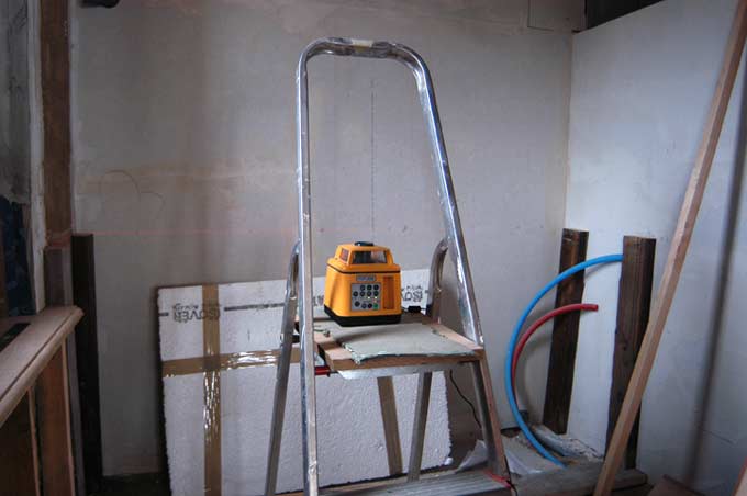 En bas, je suis toujours sur la salle de bain. Le niveau laser, un super confort.