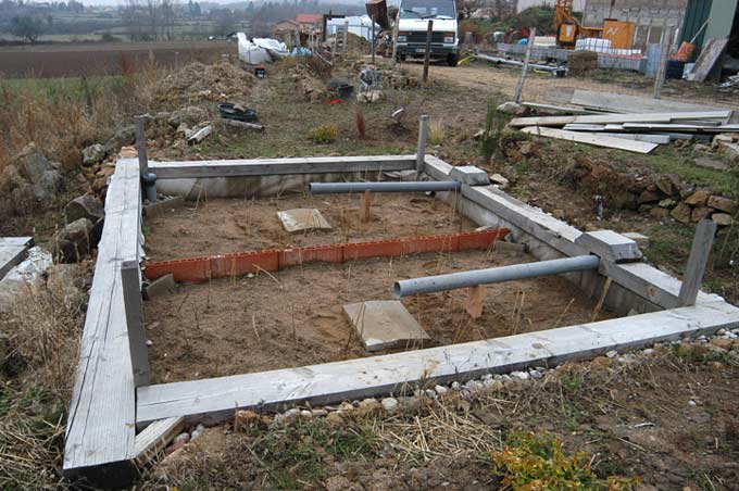 J'attaque ce matin par la station d'épuration. On avait planté les bassins il y a quelques semaines, j'ai posé les tuyaux au centre.