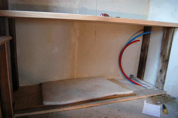 Au rez la salle de bain avance quand même. Les structures de coffres en place (au fond à gauche) on s'occupe de la tablette...