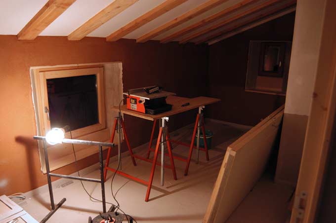 On fini d'installer les plaques de fermassol, chambre enfant et palier. (Y'a de la brume sur l'objectif !)