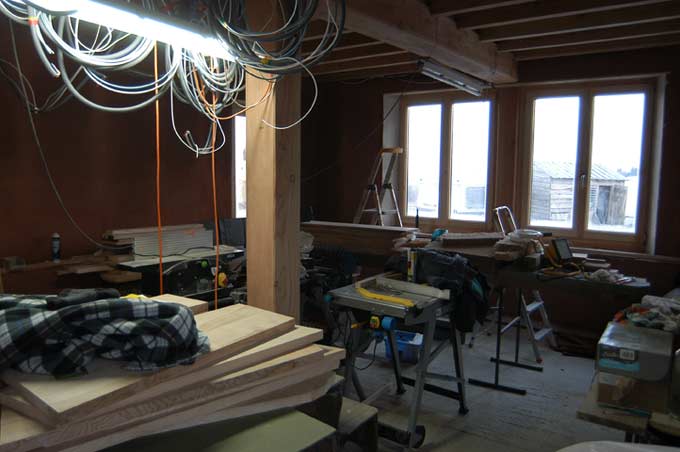 Dans la grande pièce du rez, c'est de plus en plus encombré. Demain, va falloir ranger.