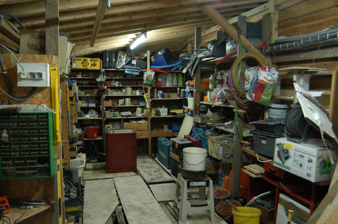 Coté cabanon, installation de nouvelles étagères. On a aussi posé des palettes + planches sur le sol: y'en avait marre d'être les pieds dans l'eau. Je gèrerais ce problème de flotte (encore un !) plus tard.