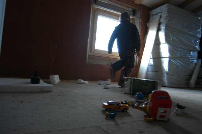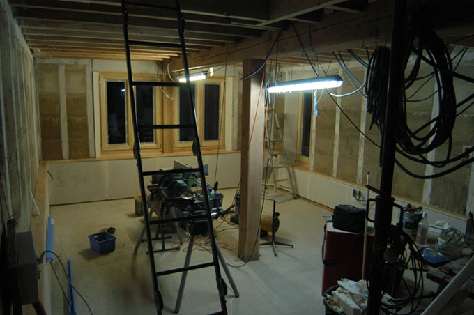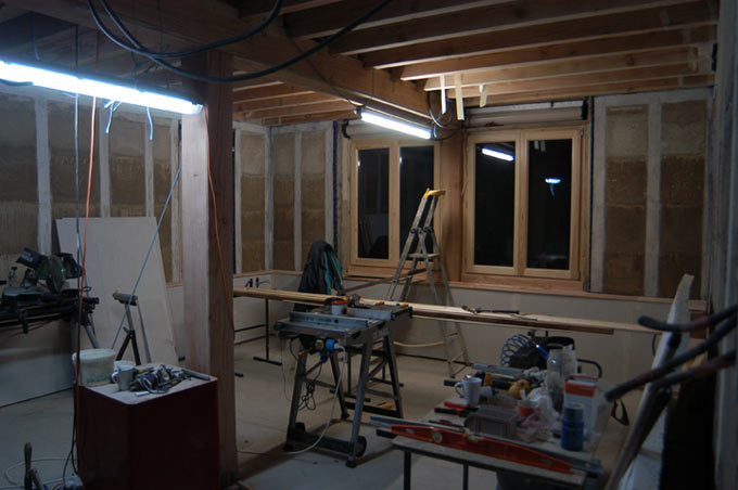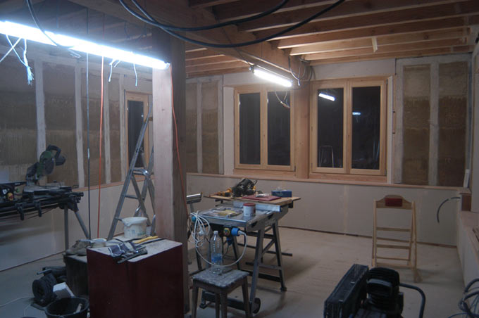 On a posé les coffres: isolation laine de bois puis fermacell.:
